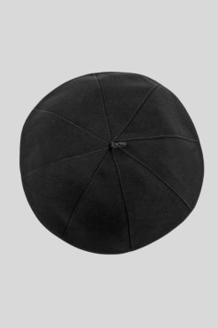 The black color signifies humility and devotion, making it a preferred choice for priests and clergy members in various traditions. Constructed with the classic eight-panel design and a central button, the cap sits securely on the crown of the head, ensuring a neat, composed appearance.