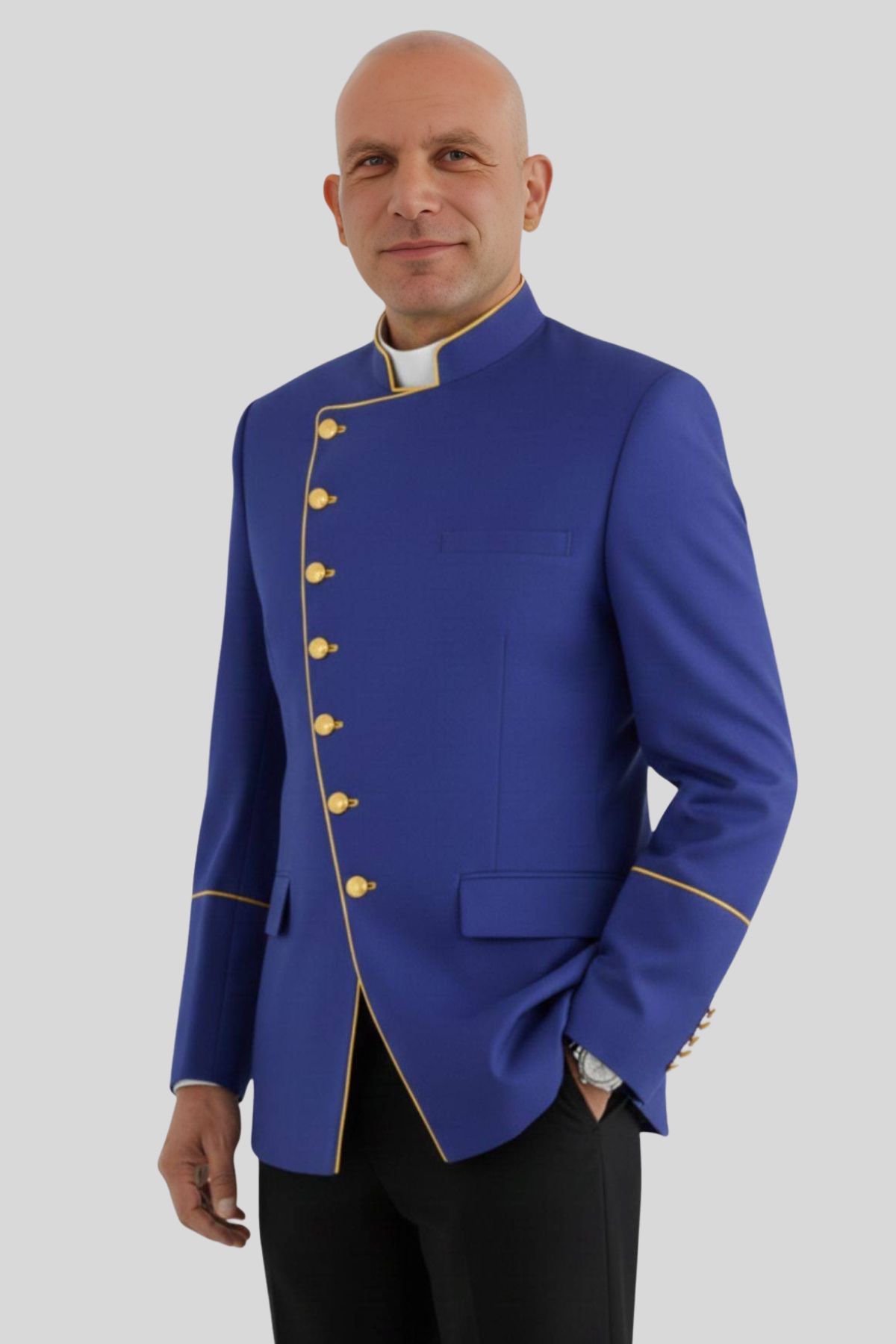 Stylish Clergy Jacket Royal Blue with Gold Highlights