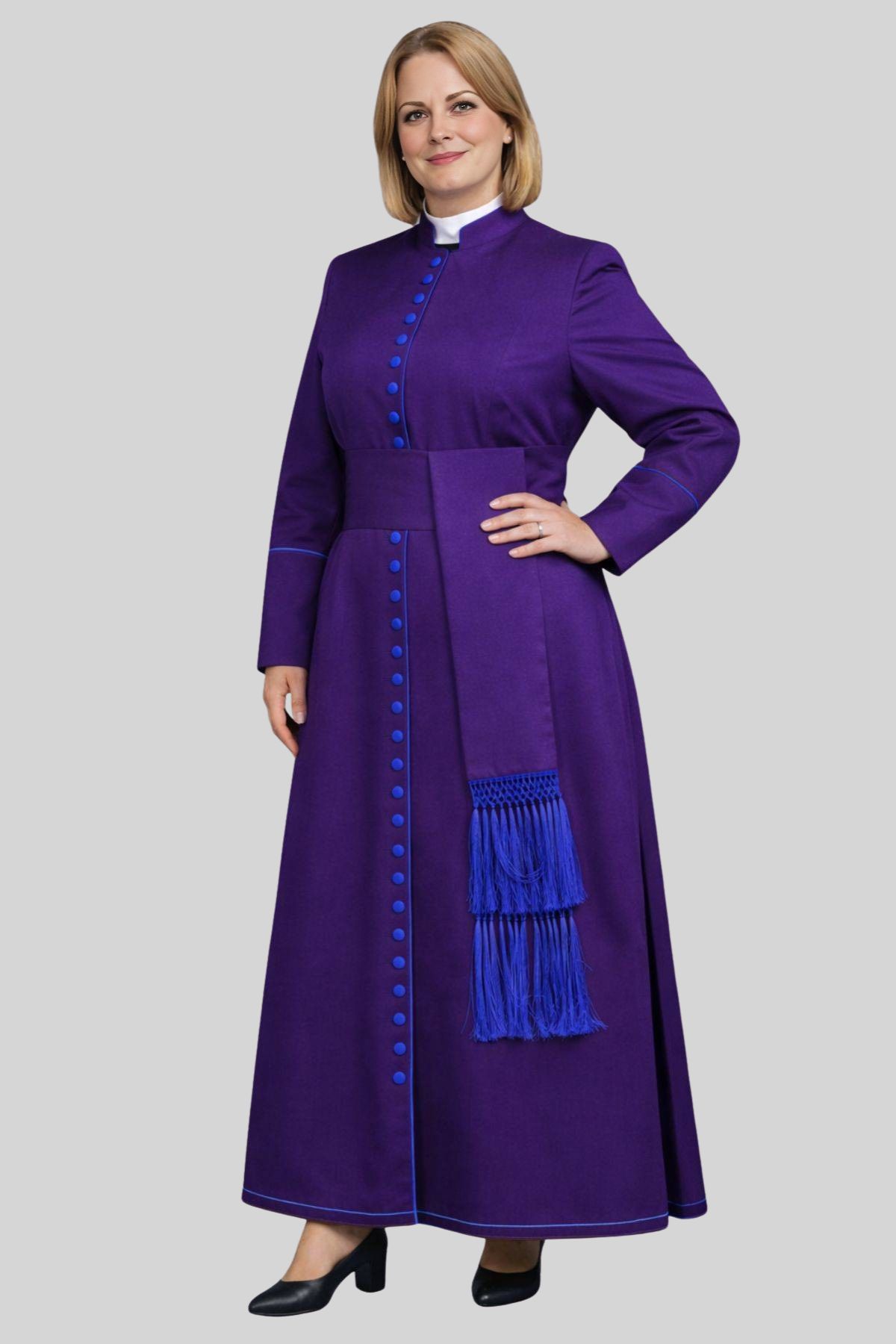 At Holy Clergy, we honor the divine calling of women in ministry through garments that express faith, leadership, and tradition. This purple clergy cassock for women is a symbol of sacred authority, designed to empower and inspire. Wear it with purpose wear it with Holy Clergy.