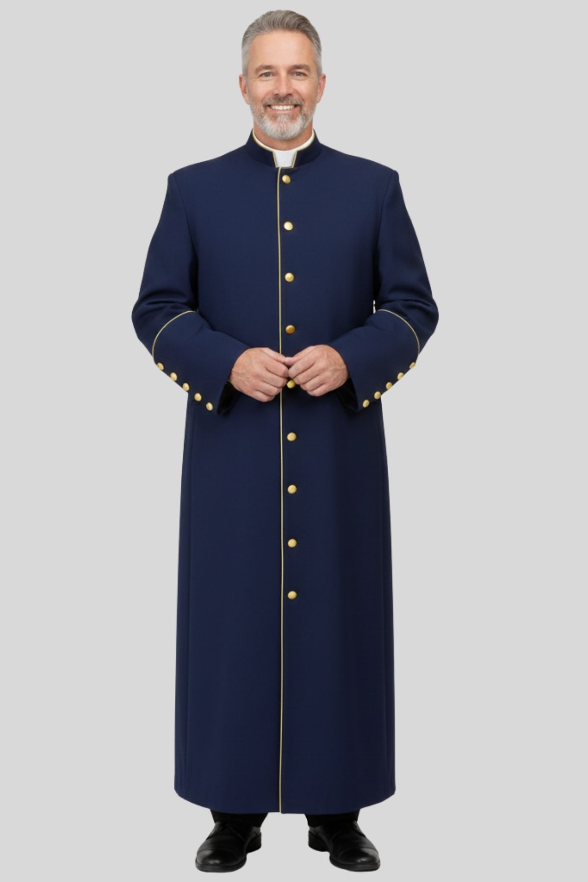 Mantle Honor Navy Clergy Robe with Golden Trim – Classic Style, Modern Comfort