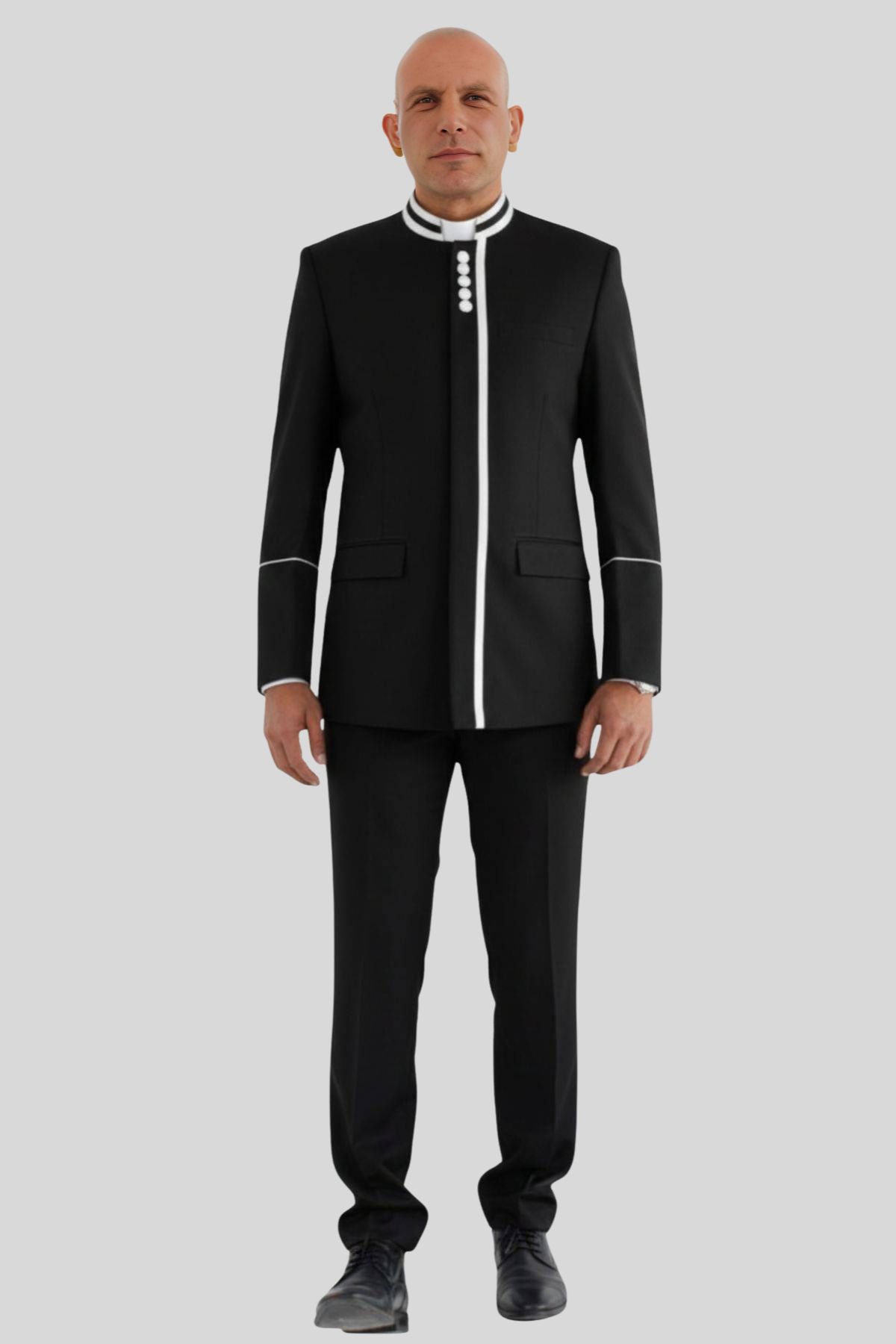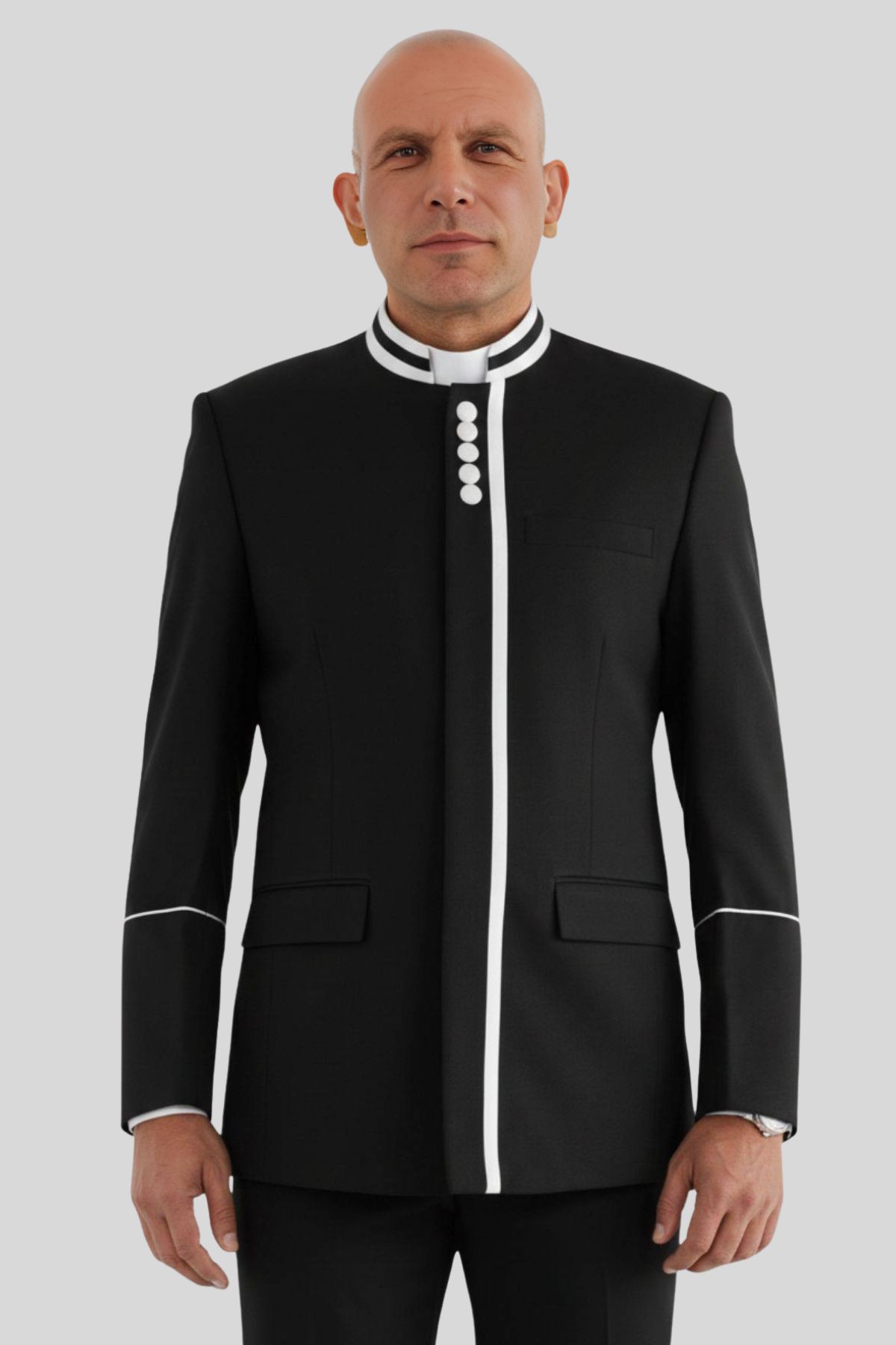 Modern Men Clergy Jacket with White Piping Trim