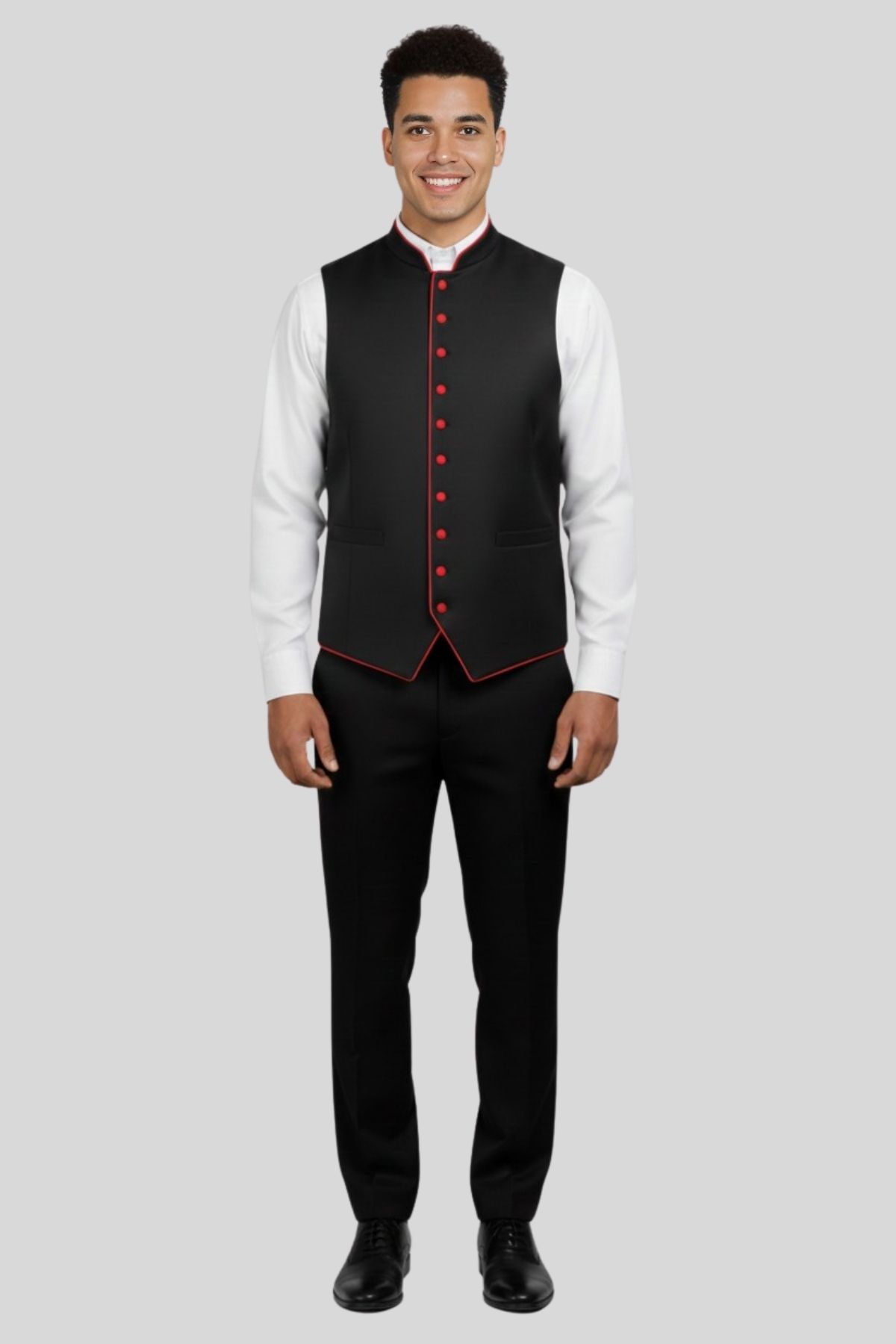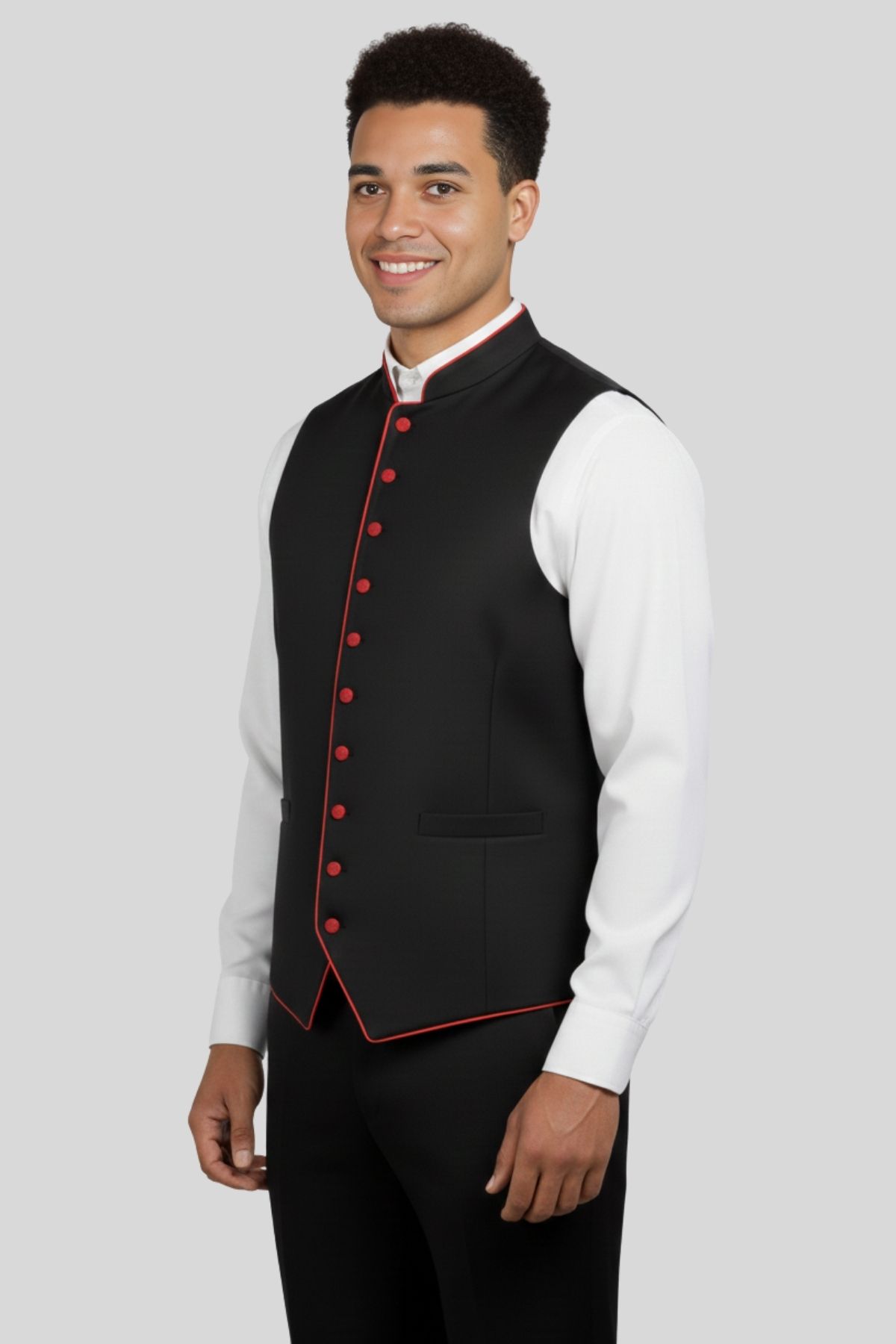 Black Clergy Vest with Red Trim – Powerful Symbolism in Refined Form
