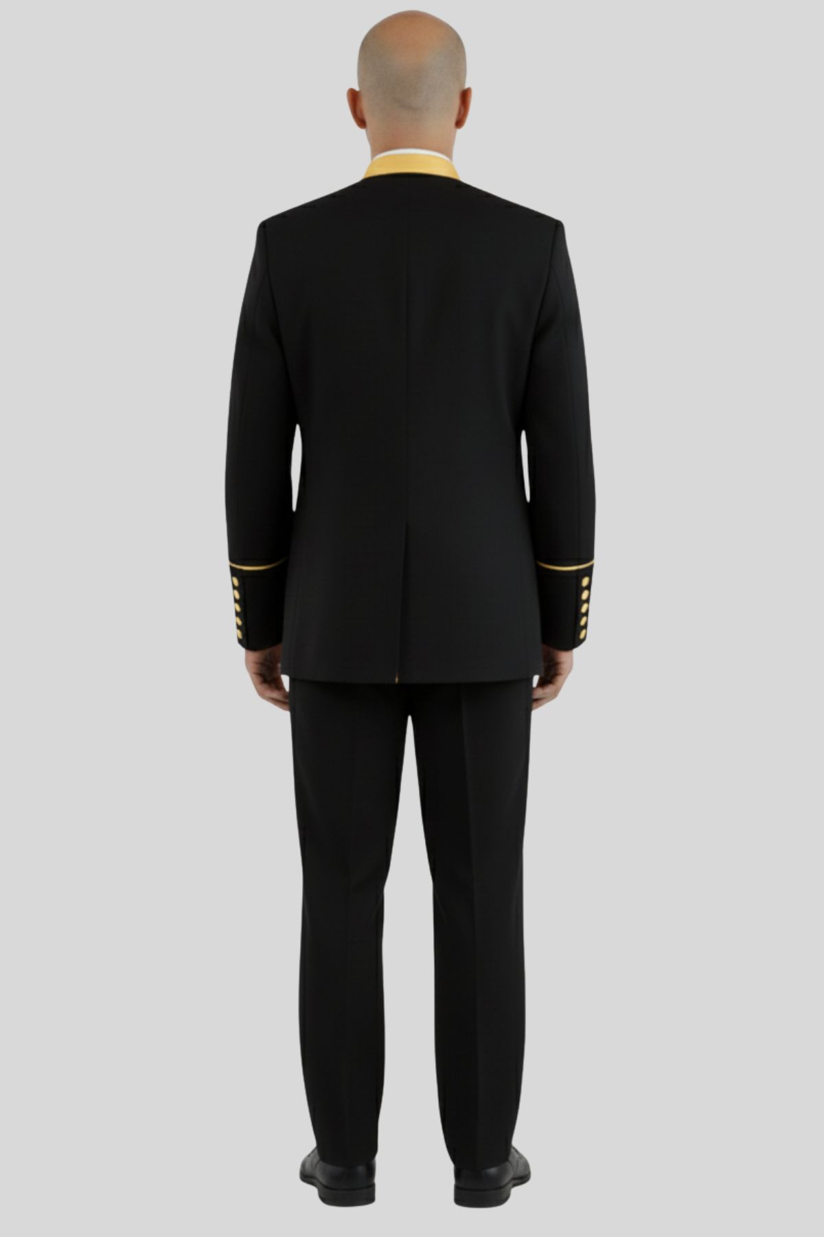 Men’s Black Clergy Jacket Gold Trim Seven Button Style