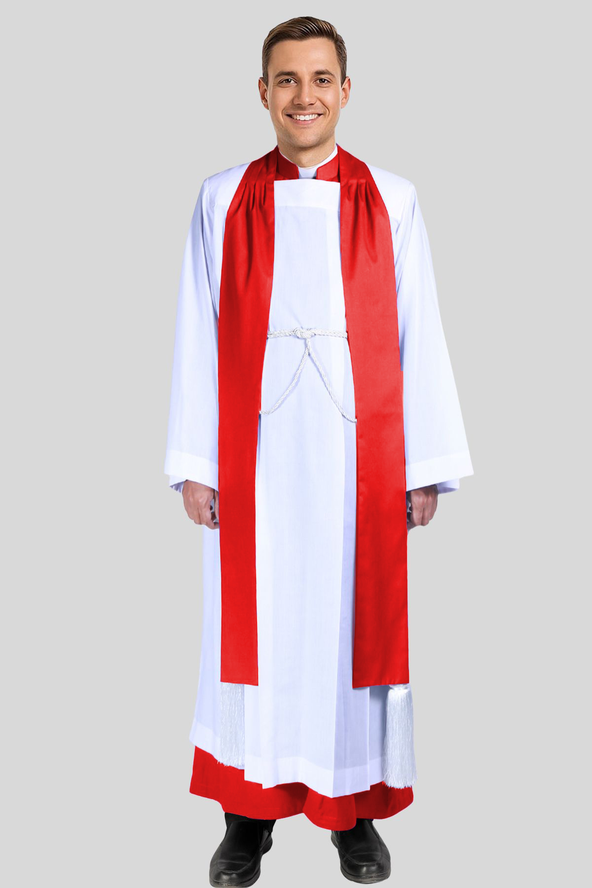 In the realm of ecclesiastical Priest Vestments, the 33 Button Red Cassock stands as a symbol of timeless elegance. Paired with a Square Neck White Alb, a Red Tippet, and a White Cincture, this ensemble transcends traditional vestments, creating a visual spectacle that captivates both the wearer and onlookers. Let’s delve into the details of this striking clergy attire.