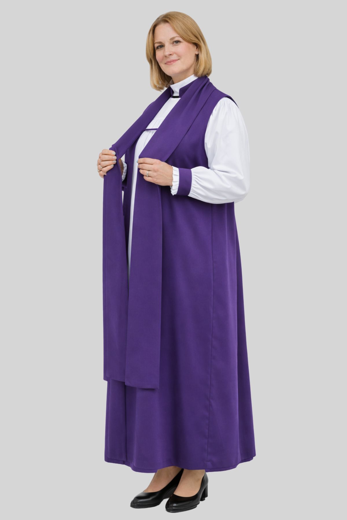 Step into sacred service with confidence and authority in our Purple Chimere for Women, designed specifically for female clergy who lead with purpose. This elegant outer vestment is perfect for bishops, pastors, and ordained ministers officiating high holy days, ordinations, and formal liturgical ceremonies. Its flowing, sleeveless design layers seamlessly over rochets, cassocks, or clerical blouses, combining tradition with practicality for a polished and dignified presence.