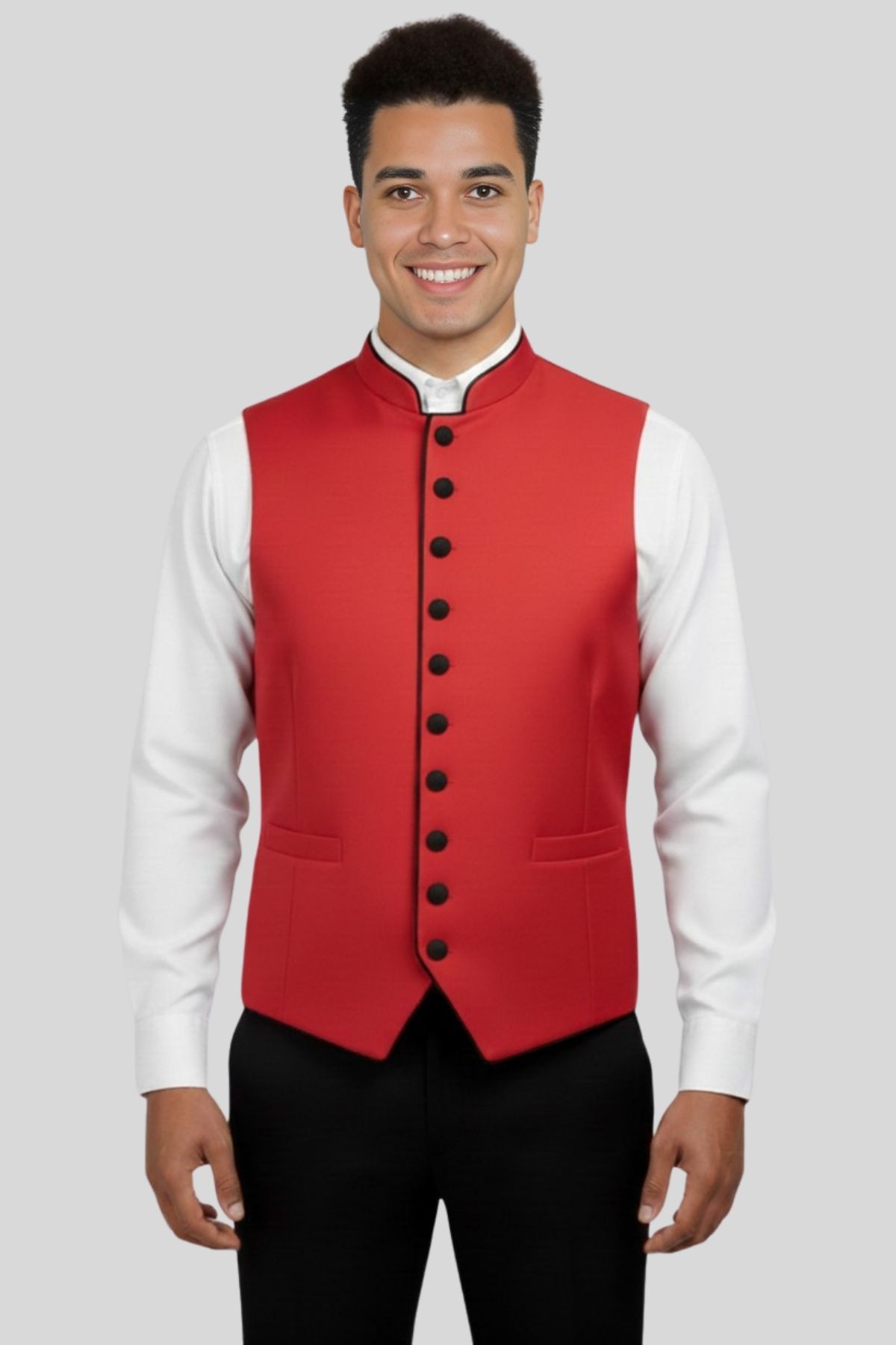 Red Clergy Vest with Black Trim – A Modern Classic for Men of Faith