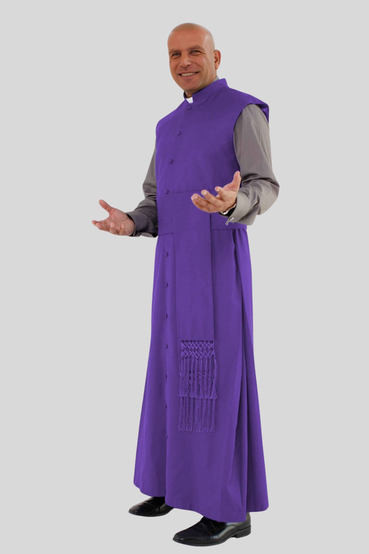 A finishing touch of cincture ends with knotted fringes enhances the ceremonial appeal, honoring long-standing liturgical traditions. The robe balances symbolism, functionality, and style, making it a must-have for any clergy wardrobe. Whether for weekly church services or special occasions, the Roman Purple Sleeveless Robe combines sophistication, comfort, and meaning, allowing ministers to focus on their calling with confidence.