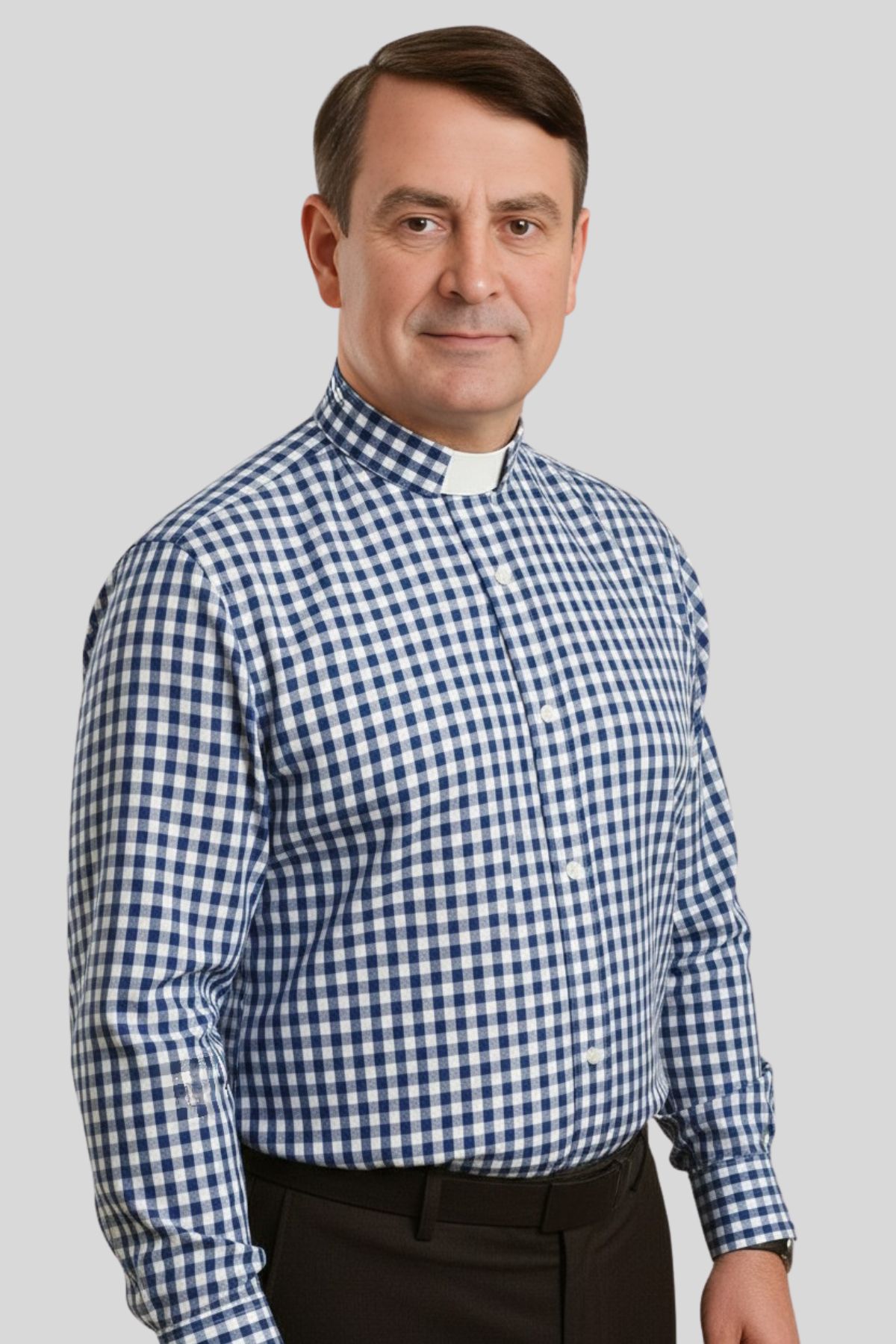 Enhance your clerical wardrobe with a shirt that reflects professionalism and faith. Order the Royal Blue Check Tab Collar Clergy Shirt for Men today and experience comfort, elegance, and tradition in one refined garment.