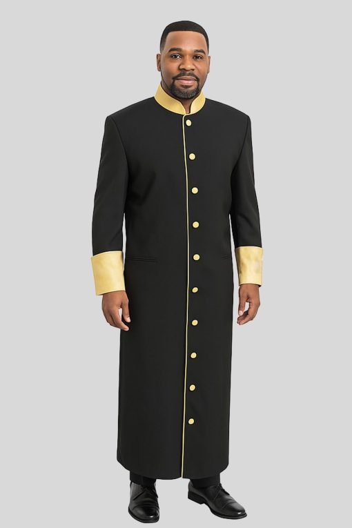 Key Features of the Solid Black Clergy Robe with Golden Trimming: