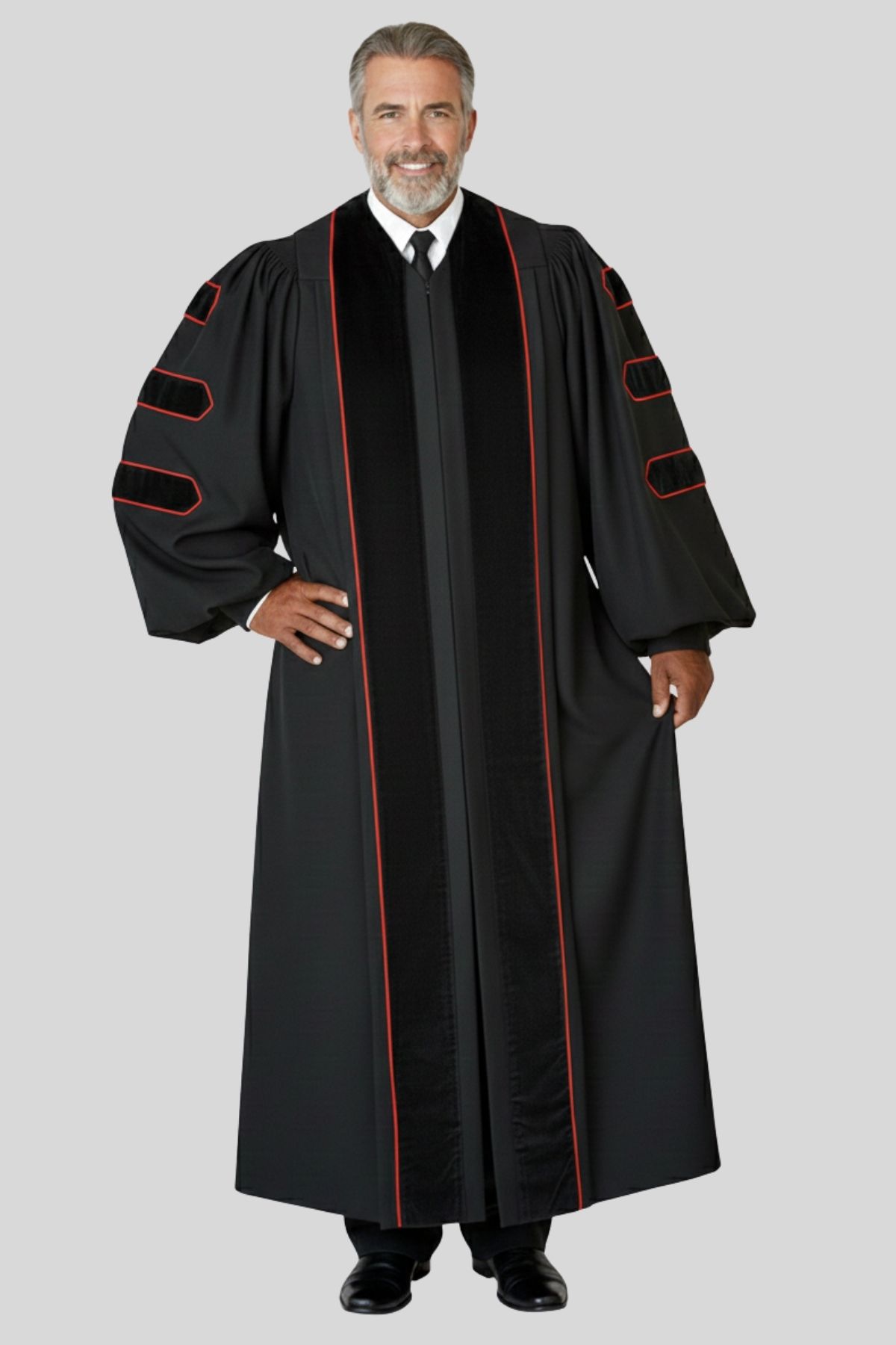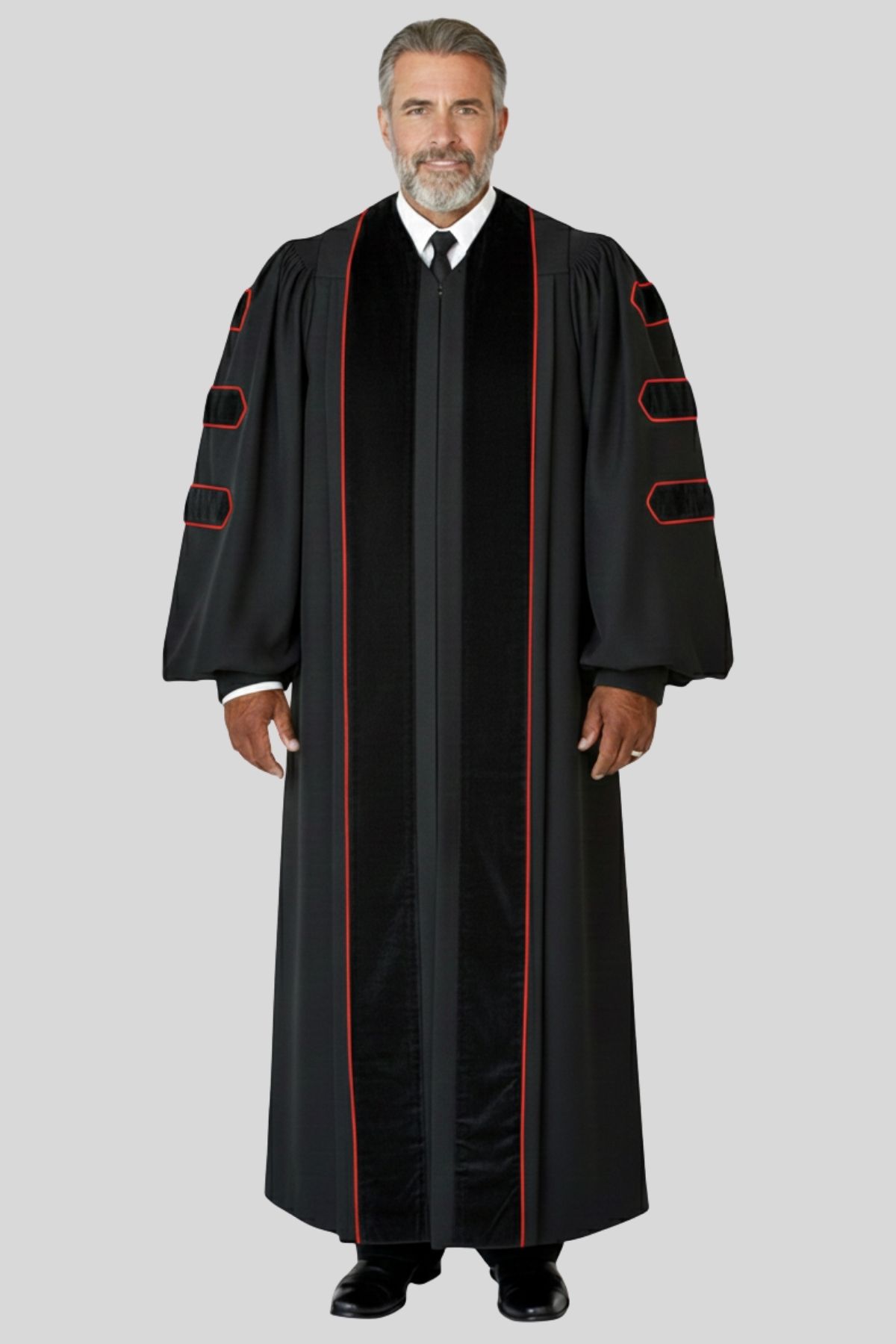 Vesper Black Pulpit Robe with Red Piping – Clergy Attire for Ministers