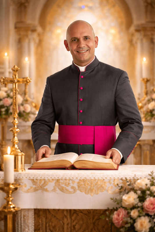 Clergy Civic Attire typically consists of formal suits or dresses, often in darker colors like black, navy, or gray. The attire might include specific accessories such as a clergy collar or a stole, depending on the occasion. While not worn during religious services, Clergy Civic Attire serves as a way to maintain a formal and respectable appearance in secular settings, such as weddings, funerals, or public speaking engagements.