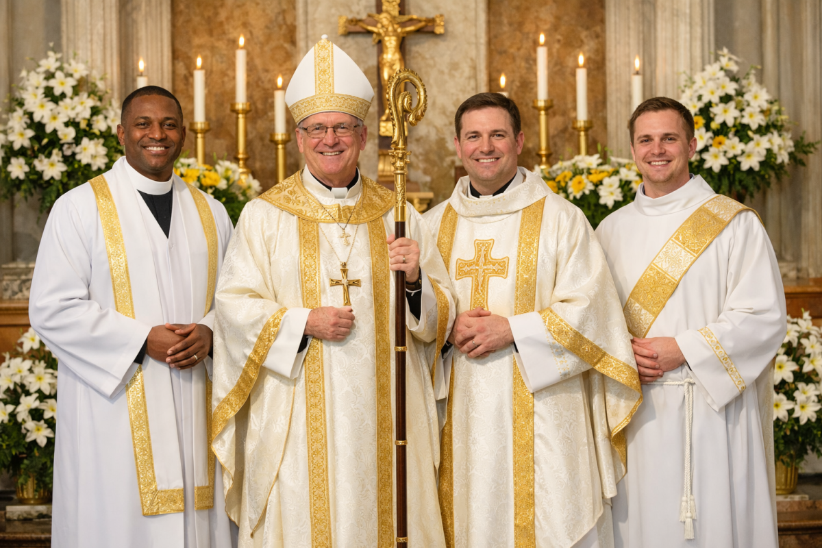 While less elaborate than a bishop or priest, a deacon’s white vestments still clearly reflect Easter joy and purity.